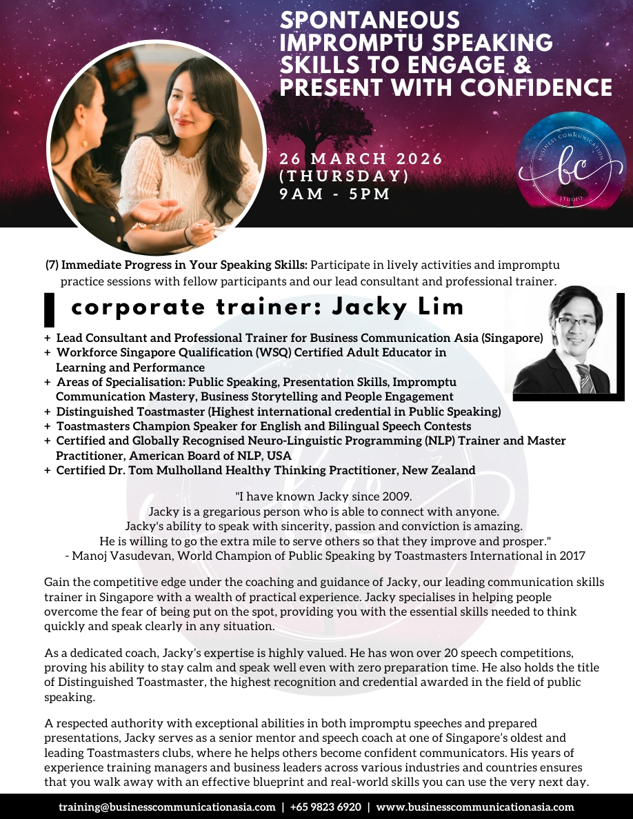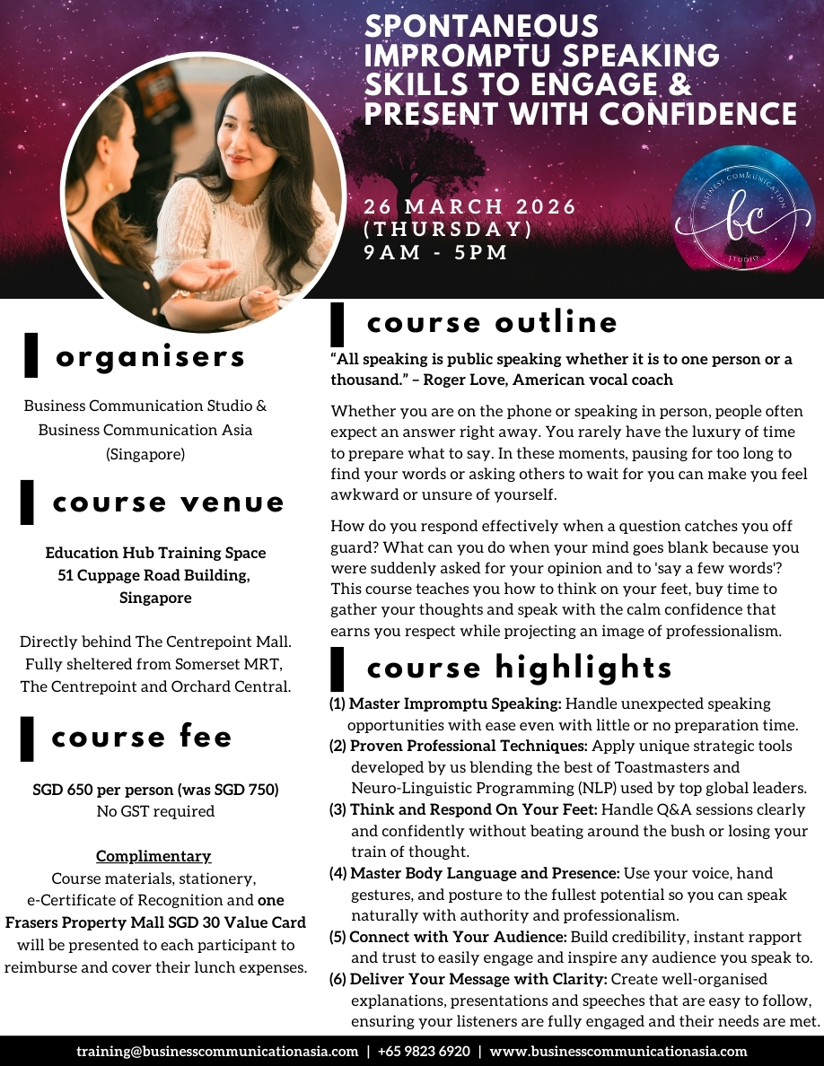 To register now, please email us at training@businesscommunicationasia.com.